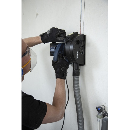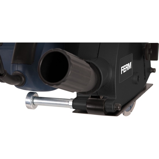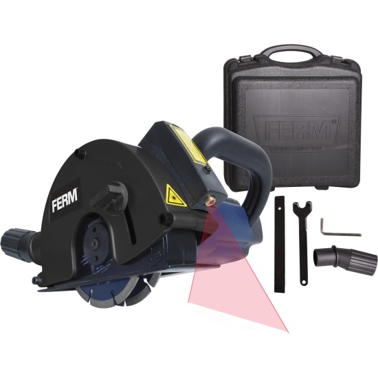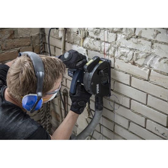 Штроборез FERM WSM1009ОписаниеШтроборез Ferm WSM1009 1600Вт – высокопроизводительный инструмент профессионального класса, которым можно проделывать штробы, каналы в бетоне, кирпиче, для прокладки электропроводки, различных коммуникаций или сантехнических труб.Высокая эффективность работы достигается благодаря большой мощности мотора (1600Вт).Штроборез имеет возможность использования спаренных или до 2 одиночных алмазных дисков с дистанционными шайбами различной толщины для проделывание нескольких штроб одновременно.Также инструмент имеет ряд таких особенностей: точная регулировка глубины и ширины реза, плавный пуск, лазерная указка, защита от перегрузки и перегрева, надежный пылезащитный кожух с выходом под пылесос.Инструмент произведен по новейшим технологиям на современном оборудовании.Длительный срок эксплуатации и безотказной работы обеспечивается применением материалов и комплектующих высокого качества.наличие лазерной указки;защита от перегрузки и перегрева;оптимизированная конструкция отвода пыли;точная регулировка глубины и ширины реза;проделывание 2 штроб одновременно;заливка обмоток статора;плавный пуск;компактные размеры.
