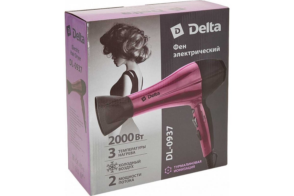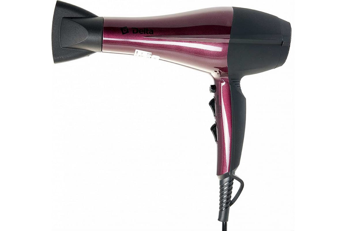 Фен DELTA DL-0937 холодный воздух, 2200 Вт, турмалиновая ионизация, черный с бордовым 12 0R-00004796 предназначен для сушки волос.