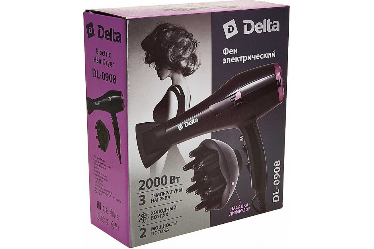 Фен DELTA DL-0908 ДИФФУЗОР холодный воздух, 2000 Вт, черный 12 Р1-00011048 предназначен для сушки волос.