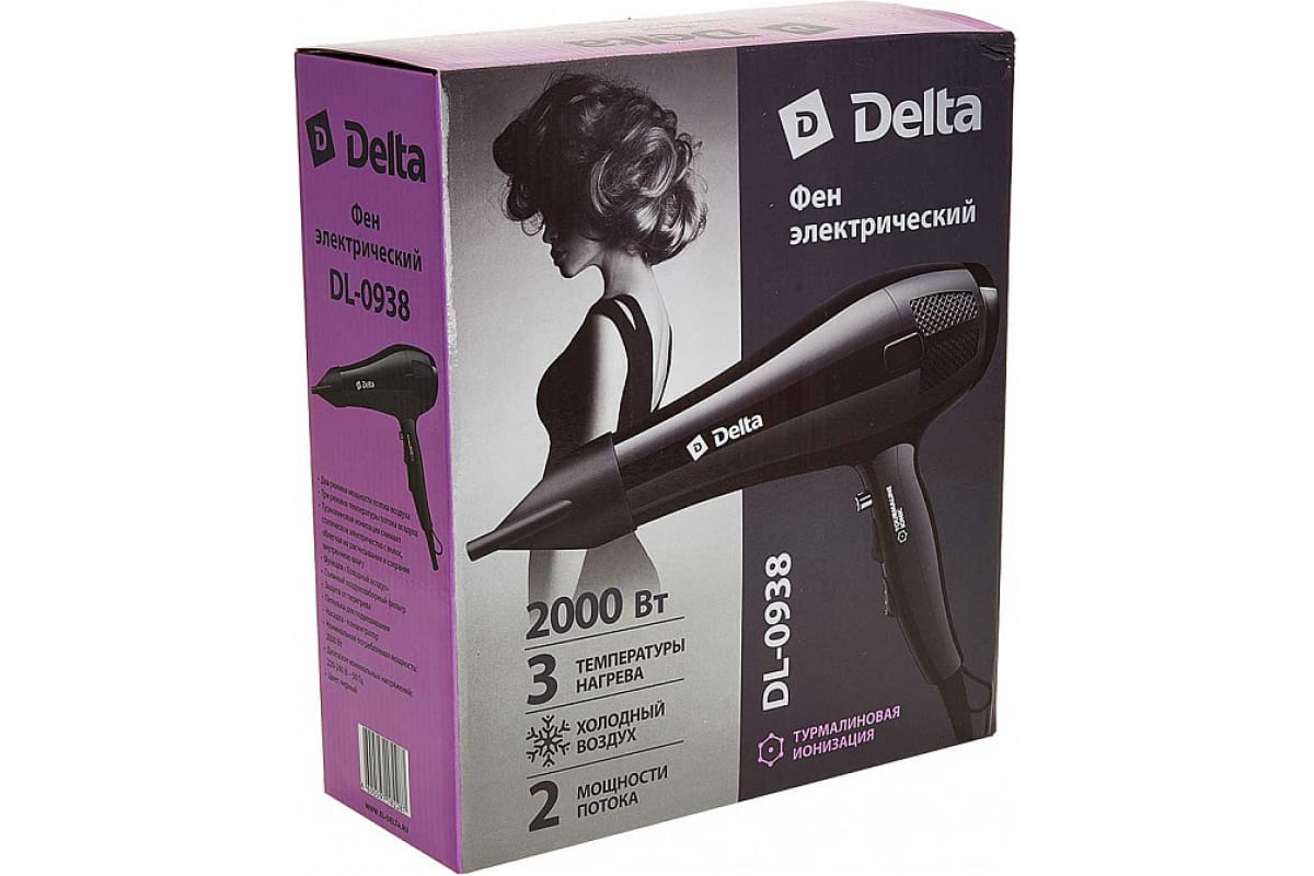 Фен DELTA DL-0938 холодный воздух, 2200 Вт, черный 12 0R-00004800 предназначен для сушки волос.