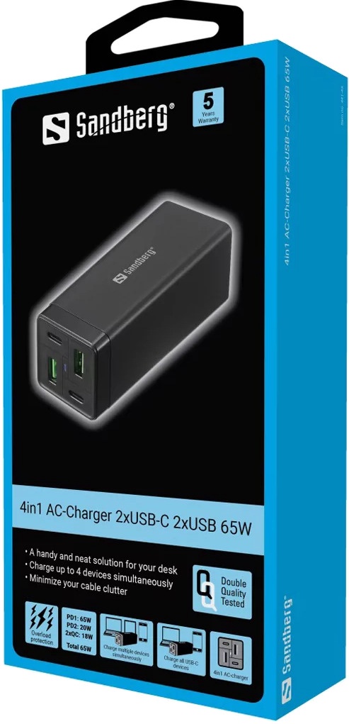 - Модель 4in1 Charger 2xUSB-C 2xUSB 65W