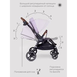 Комфорт для ребенка:можно повернуть лицом к маме/лицом к мируспинка с механической регулировкой раскладывается до горизонтального положения; спальное место очень просторноеподножка регулируетсябольшой капюшон укроет от непогоды и яркого солнышкаколеса с амортизацией - кроха не заметит мелких неровностей на дорогесветоотражающие элементы для безопасностиКомфорт для родителей:вес - 10,3 кг, благодаря облегченной алюминиевой рамебыстрое складывание/раскладывание вместе с блоком, автоматическая фиксация4 положения телескопической ручки - коляска подойдет для любого ростаоткидной бампер - кроху удобно вынуть/посадитьмягкий матрасик можно снять для стиркичехлы из ткани, защищенной от ветра, влаги, выгоранияручка и бампер отделаны практичной экокожейтормоз - “качелька” - не пачкает обувьмакс. нагрузка: 15 кг.макс. нагрузка на корзину: 3 кг.Размеры модели:ширина колёсной базы (см) 59диаметр передних колес (см) 14диаметр задних колёс (см) 23высота от пола до ручки (см) 97/104размер горизонтального положения спинки (в градусах): 170°высота и ширина спинки в см (ДхШ): 50х30глубина (длина) и ширина сидения в см (ДхШ): 25х29размер спального места с поднятой подножкой в см (ДхШ): 90х30