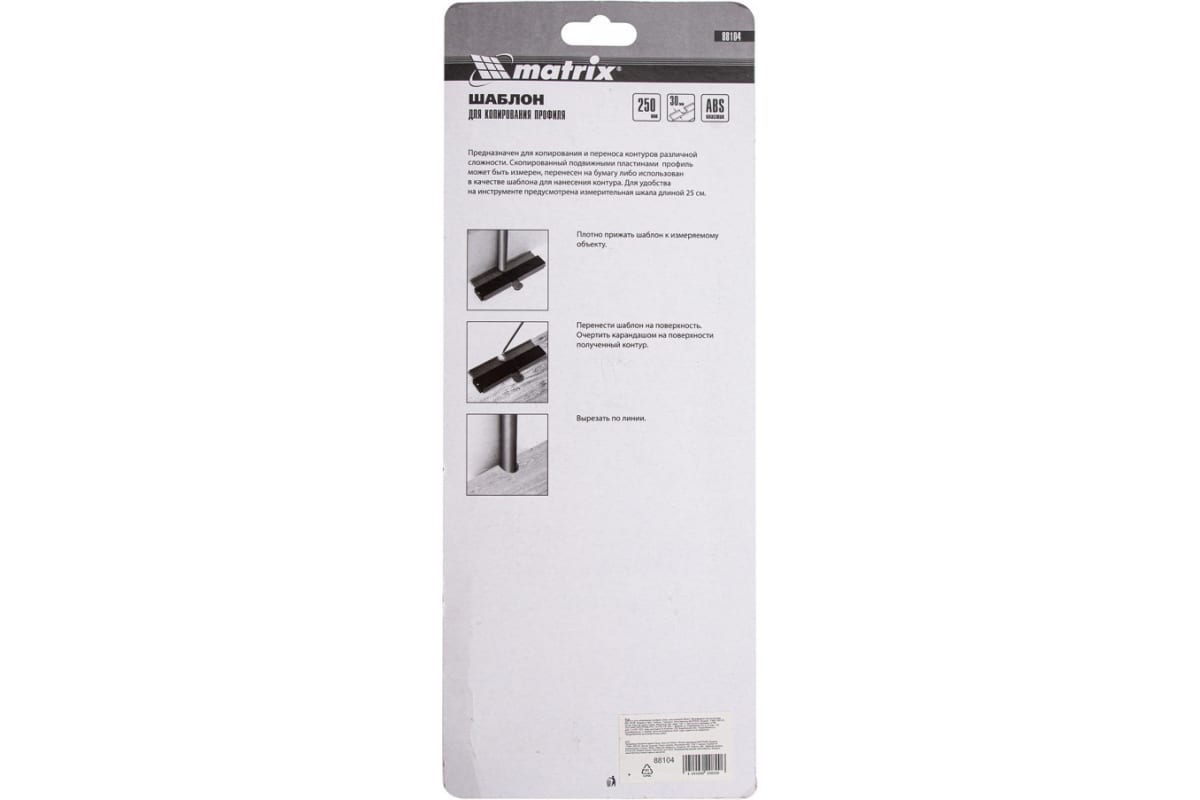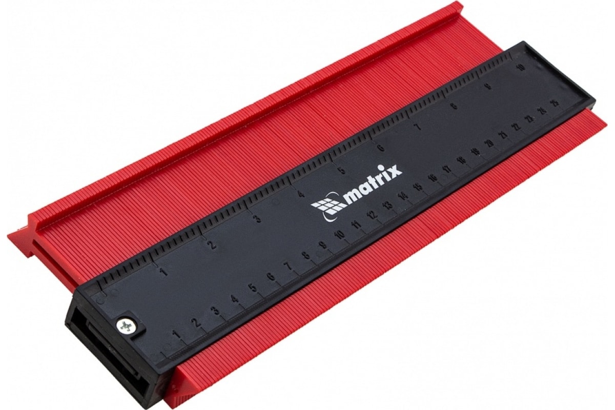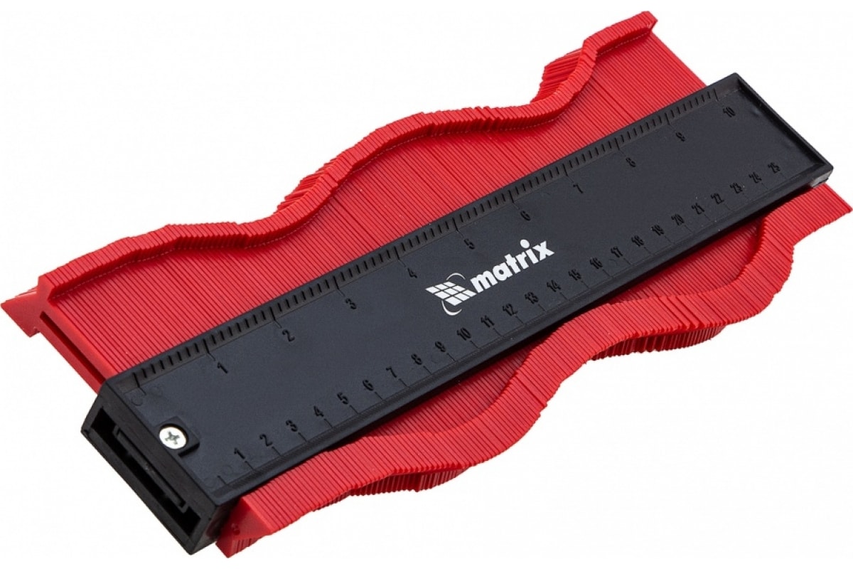 Пластиковый шаблон для копирования профиля MATRIX 25 см 88104 предназначен для копирования и переноса контуров различных форм. Шаблон необходим для точной подрезки отделочных материалов (ламинат, линолеум, кафельная плитка, гипсокартон и др.) при обходе труб водоснабжения, углов и других рельефных препятствий. Перенос контуров осуществляется при помощи выдвижных пластиковых пластин. Шаблон оснащен измерительной шкалой длиной 25 см.
