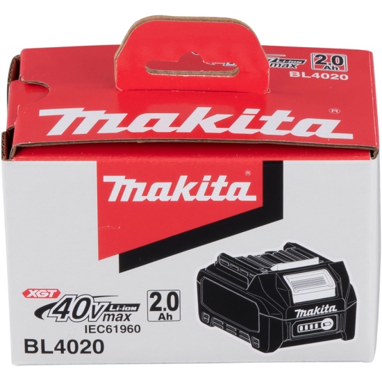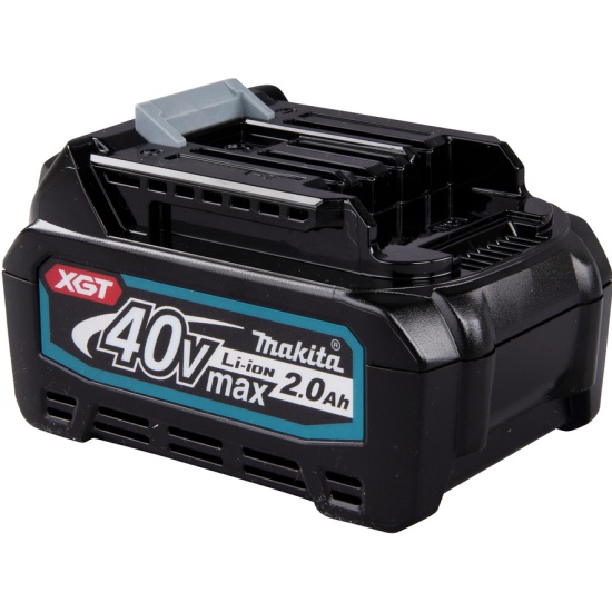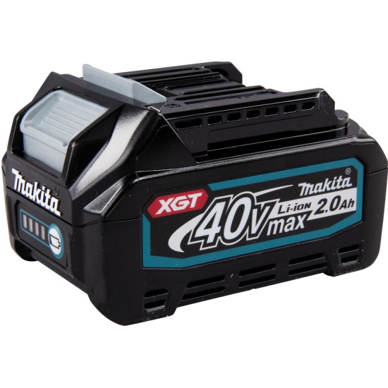 Аккумулятор XGT 40 В с емкостью 2,0 Ач. Оснащен светодиодным индикатором с уровнем заряда аккумулятора. Зарядное устройство обеспечивает наиболее оптимальную зарядку. Время полной зарядки 22 мин. в зарядном устройстве DC40RA. Аккумулятор рассчитан на работу в суровых условиях, имеет прочную конструкцию, а также защиту от пыли и брызг.• Крепкий корпус аккумулятора.• Прочный держатель аккумуляторных элементов с повышенной устойчивостью к механическим повреждениям.• Стойкая водонепроницаемая трехслойная защита аккумуляторных элементов от повреждений при попадании пыли и влаги.• Износостойкий слайдерный механизм специально разработан для надежного соединения мощного инструмента и аккумулятора.• Система цифровой связи инструмента и аккумулятора во время работы инструмента постоянно отслеживает состояние аккумулятора и отключает инструмент в случае превышения допустимой температуры, перегрузки или полной разрядки.• Во время зарядки аккумулятора система цифровой связи отслеживает уровень заряда аккумулятора и предотвращает перезаряд аккумулятора.• Индикатор остаточного заряда аккумулятора (4 световых диода).