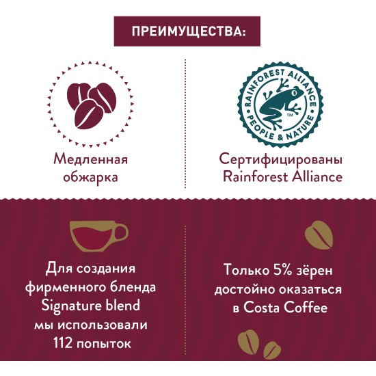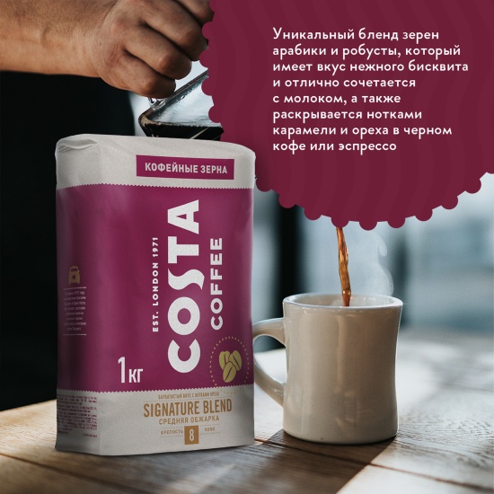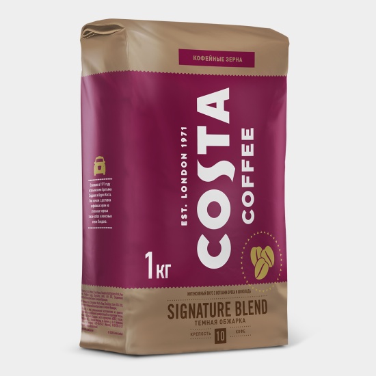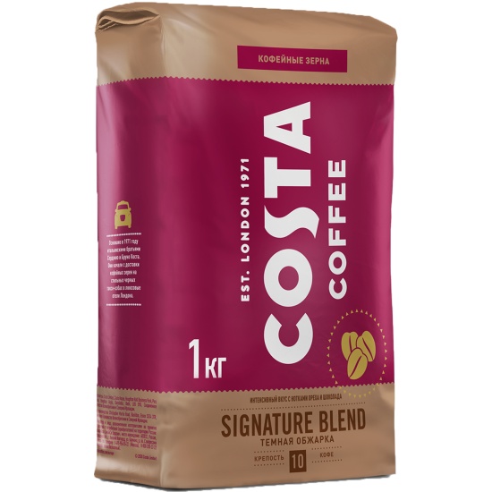 Кофе в зернах Costa Coffee Signature Blend, темная обжарка, 1кг. 5012547001650
