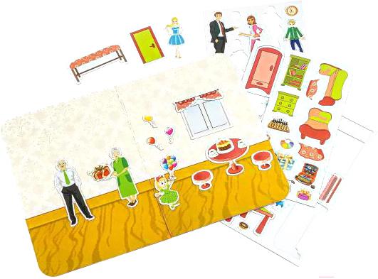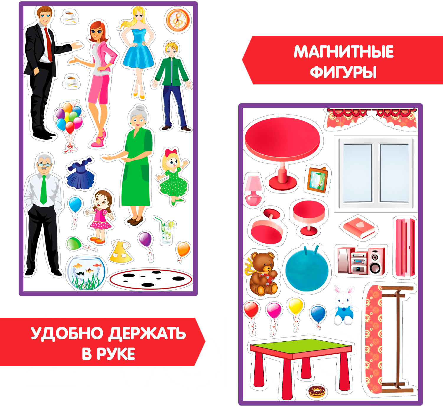• В наборе кукла-магнит (8 шт.), декорация, магнитная доска, инструкция