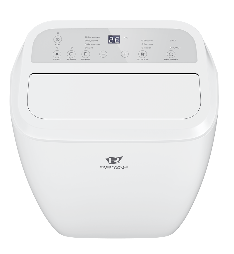 Мобильные кондиционеры Royal Clima SIESTA с электронным управлением. Автоматические горизонтальные жалюзи, управляемые с пульта ДУ, 3 режима работы: охлаждение, осушение, вентиляция, таймер 24 часа, режим СОН, легкость перемещения, набор аксессуаров в комплекте.