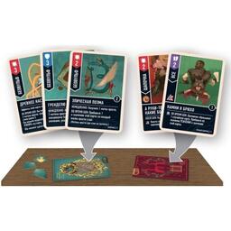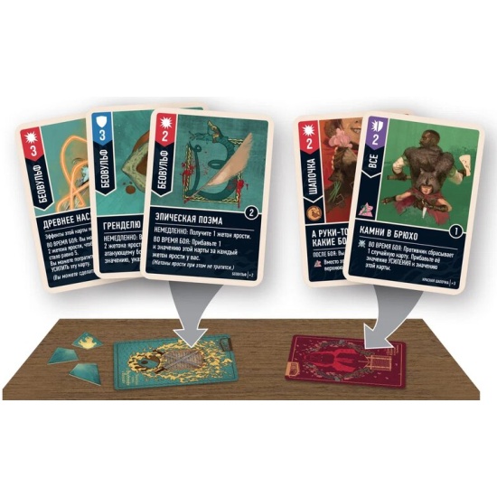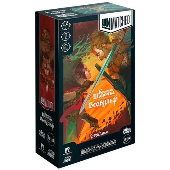 Настольная игра GAGA GAMES Unmatched. Красная Шапочка vs. БеовульфаКрасная Шапочка vs. Беовульф — это часть популярнейшей серии дуэльных карточных игр Unmatched, в которой соперники стремятся одержать верх друг над другом с помощью уникальной колоды и способностей своего легендарного персонажа. Эпичные поединки самых сильных и бескомпромиссных героев различных вселенных продолжаются! На этот раз лицом к лицу сойдутся Красная Шапочка из волшебной сказки и герой англосаксонской поэмы Беовульф.Итак, перед вами поле битвы, в ваших руках — карты, разыгрывая которые вы будете перемещаться, выполнять приемы или атаковать противника. Осталось только выбрать своего героя..Светило солнце и пели птички, хрупкая девочка в красном капюшоне несла угощение в корзинке для своей бабушки. Собирая цветы и гуляя по дорожкам в лесу, она сама не заметила, как вышла на тропу войны… Наверняка все знают, чем закончилась та самая история с серым волком, но с тех пор много воды утекло, и теперь бесстрашная Красная Шапочка путешествует по лесу с доблестным охотником, а в корзинке у нее не только пирожки.Карты и способности Красной Шапочки тесно взаимосвязаны и идут друг за другом по цепочке, заводя противника все дальше и дальше в глубь лесной чащи. Это делает ее идеальным персонажем для ценителей красивых сочетаний, любителей комбинировать и разыгрывать целые серии приемов. Как будто вы опускаете руку в свою корзинку и умело пользуетесь тем, что там нащупали — что это: ядовитые цветы, охотничий нож или волчья шкура? От вашего выбора и магии случайности зависит успех поединка, поэтому приготовьтесь просчитывать свои ходы до мелочей и грамотно планировать действия.Помогает этой сильной девочке ловкий охотник, который не просто следит за зверьем в лесу, но и подрабатывает лесорубом. Он умело орудует своим тяжелым топором в ближнем бою, а если вы решили убежать от него, но не успели спрятаться среди деревьев, мощный бросок этого холодного оружия может вас настигнуть в любой момент.Герой эпоса англосаксов Беовульф — доблестный скандинавский военачальник — славится силой своего могучего тела и боевого духа. Легенды и авторы игры наделяют его непревзойденной мощью и яростью берсерка. Иначе как ему удалось победить страшное злобное чудище по имени Грендель и сразить мифического дракона?Легендарный воитель и выносливый мастер ближней атаки свысока смотрит на своих противников и их жалкие потуги нанести ему раны в бою. Ведь полученный урон только раззадоривает Беовульфа и позволяет ему накапливать ярость, которую можно использовать для усиления последующих действий. Она пригодится вам для сокрушительных атак, дальних перемещений и даже для восстановления здоровья. Этот персонаж придется по душе игрокам, которым нравится искать и находить баланс, полагаясь при этом не только на себя, но и используя действия соперника.Верный друг и помощник Беовульфа — Виглаф — окажет существенную поддержку в стычке с врагом. Осторожно, он активно перемещается по карте, размахивая своим мечом так, что может ранить и своего командира. Конунг впадает в ярость, соперники недоумевают, однако это даже на руку скандинавскому отряду, ведь теперь на их стороне мощь берсерка!