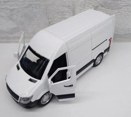 Металлическая модель авто Mercedes-Benz Sprinter металл свет, звук, открываются двери 1:32