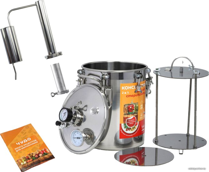 - Совместимые банки 0.5 л, 0.7 л, 1 л, 2 л, 3 л (8x0.5 л, 4x0.7 л, 3x1 л, 1x2 л, 1x3 л)