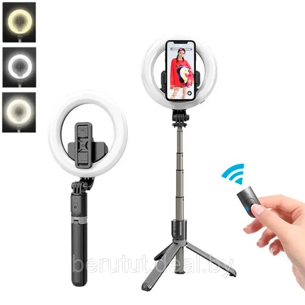 Штатив-монопод Selfie Stick Tripod Q07 с кольцевой LED лампой 16см (Светодиодная лампа для селфи)
