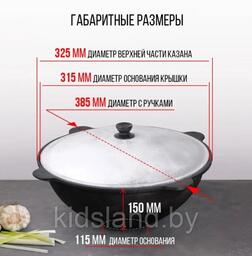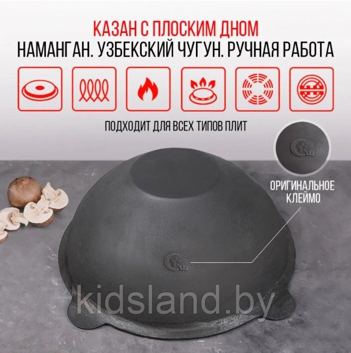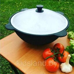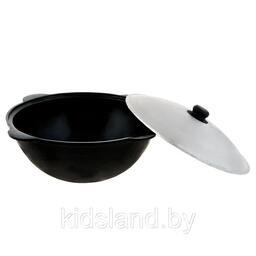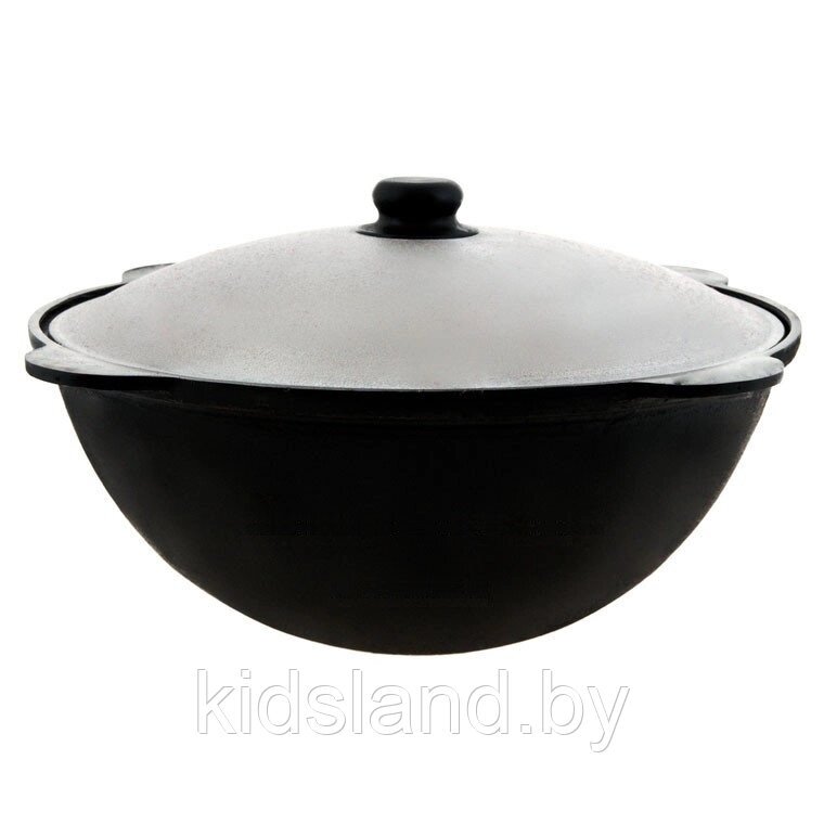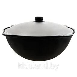 Узбекский казан чугунный 6 литров с крышкой (плоское дно). Наманган