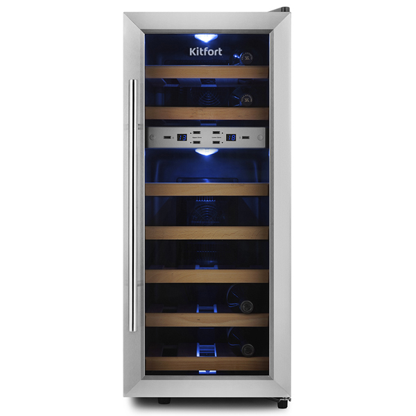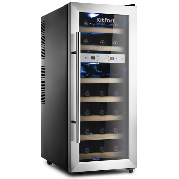 ОсобенностиВажной особенностью винного шкафа Kitfort КТ-2406 является наличие двух климатических зон, в которых можно хранить разные сорта вина при разной температуре.