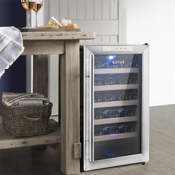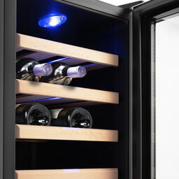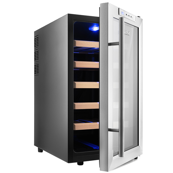 • Особенности Винный шкаф оборудован пятью надежными деревянными полками, дверца шкафа из тонированного стекла не пропускает УФ-излучение, что исключает вероятность окисления вина.
