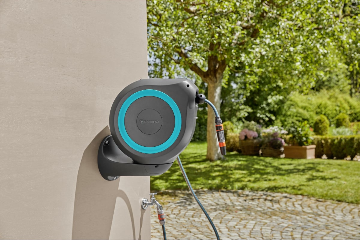Настенная автоматическая катушка со шлангом Gardena RollUp M, 20 м 18610-32.000.00