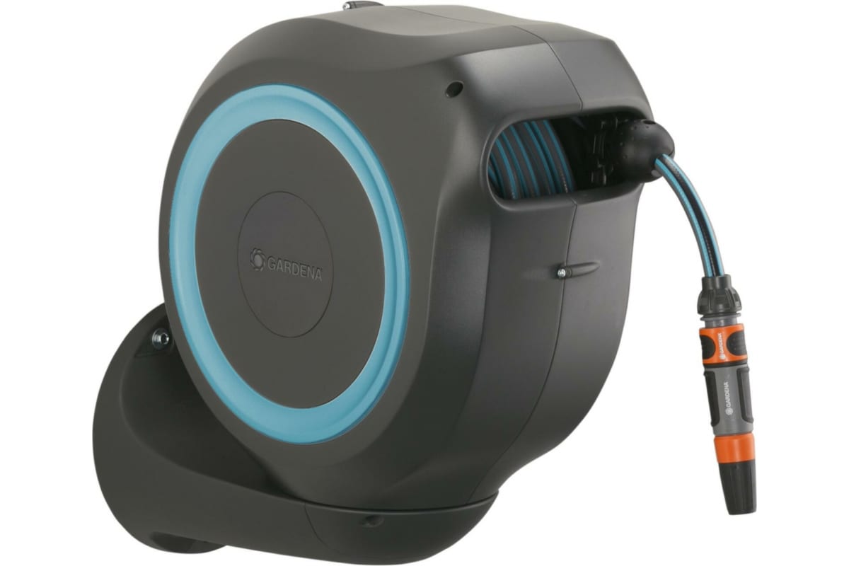 Настенная автоматическая катушка со шлангом Gardena RollUp M, 20 м 18610-32.000.00 – идеальный помощник для аккуратного хранения и эксплуатации садового шланга.