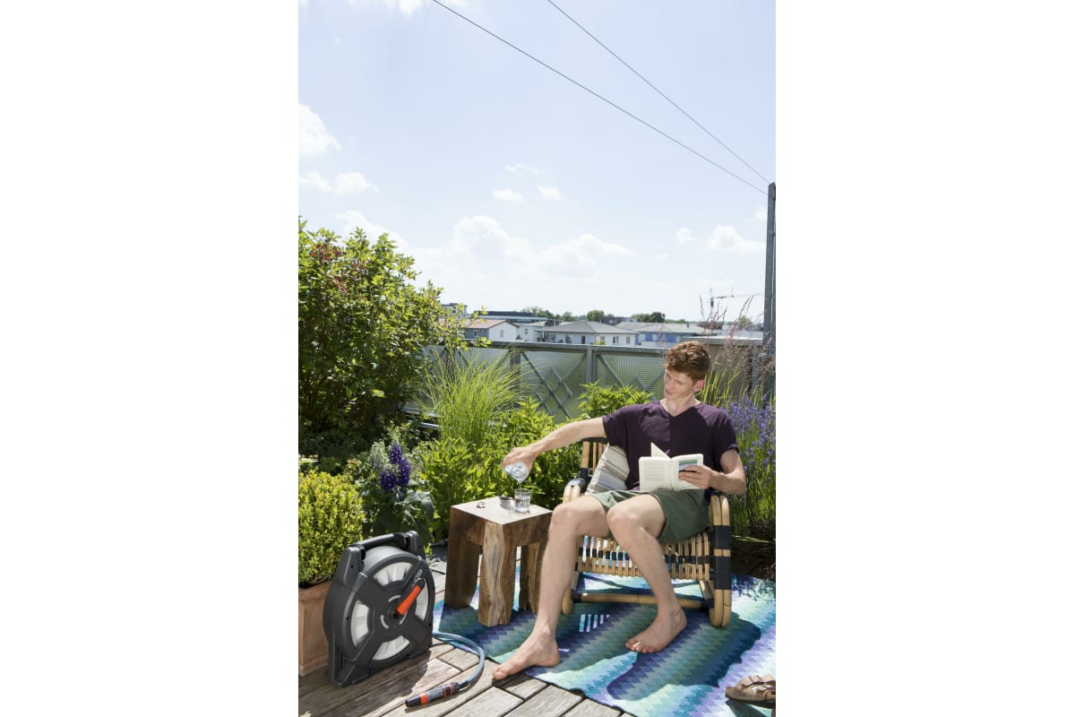 Катушка со шлангом и фитингами Gardena City gardening 18400-20.000.00 является лучшим решением в небольшом саду, на балконе и в походе.