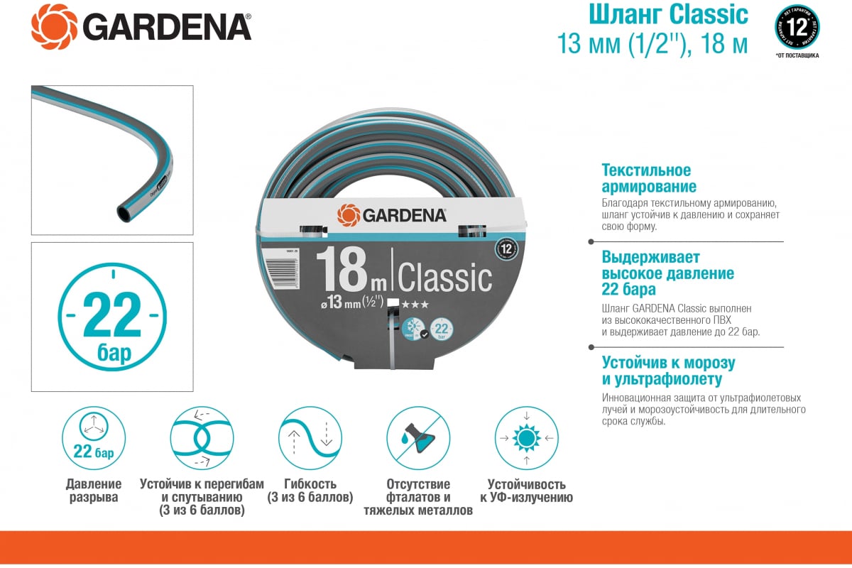 Шланг Classic 1/2", 18м Gardena 18001-20.000.00