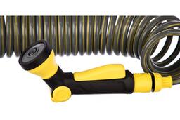 Шланг предназначен для быстрого полива небольшой по площади территории. Его можно растянуть на длину до 10 м, после чего он сам вернется в обратное состояние. Шланг изготовлен из экологичного материала, прочен,безопасен, устойчив к УФ-излучению.