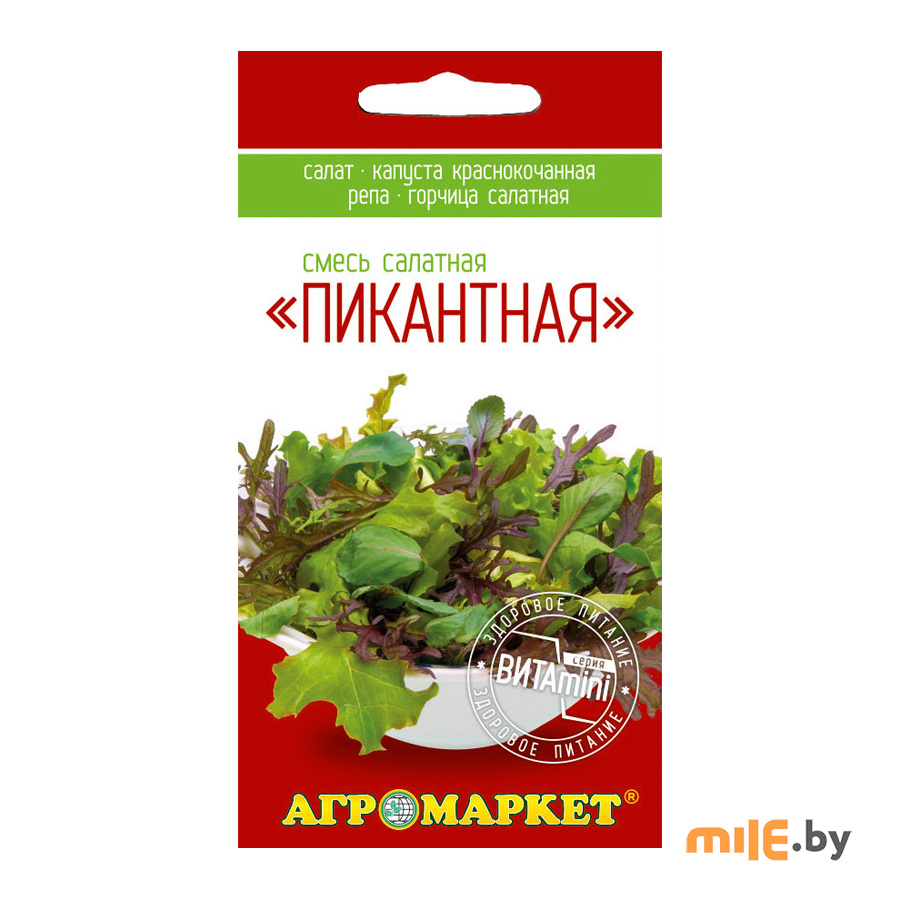Для поклонников здорового питания, серия "Витаmini" (салаты "Baby leaf" ), молодые мелкие листья салатов и других листовых овощей в смеси. Их употребляют на стадии всходов (2-4 листочка), семена можно высевать в контейнеры в течение всего года либо в открытый грунт и парники весь вегетационный период с весны до осени. Первый сбор листьев через 3-4 дня после сева, когда растения достигнут высоты 5-10 см. С одного посева можно получить 2-3 сбора.