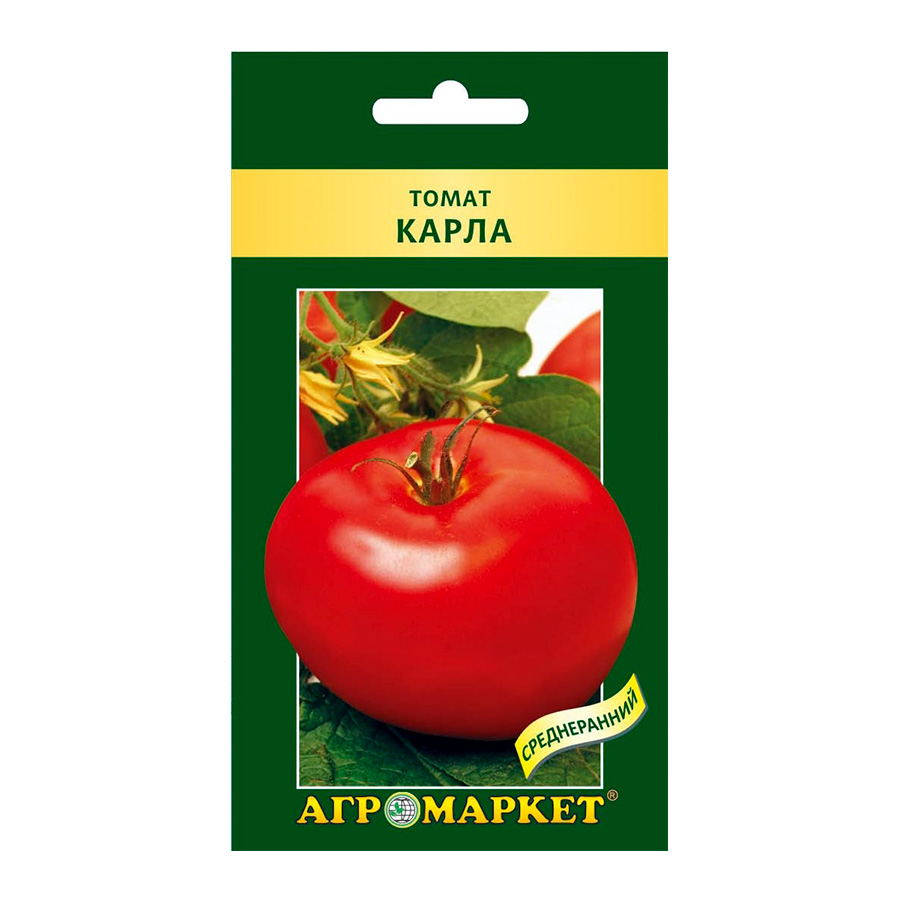 Томат Карла - среднеранний детерминантный сорт. Растение компактное, открытого типа, рано вступает в плодоношение. Плоды средней плотности, плоско-округлой формы (типа Биф) с высокими вкусовыми качествами, насыщенно красного цвета, средним весом 130-140 г. Идеально подходит для свежего потребления, а также для переработки на томатпродукты. Рекомендуется для выращивания в открытом грунте и пленочных теплицах. Семена высевают в кассеты или в рассадные ящики. При температуре +20-22°С всходы появляются на 5-7 день. При появлении 2-й пары настоящих листьев рассаду пикируют, пересаживая растения в отдельные горшочки. В период роста рассаду необходимо регулярно подкармливать минеральными и органическими удобрениями. При высадке готовой рассады в поле в лунку добавляют комплексные удобрения и перепревший навоз. В период вегетации томаты подкармливают минеральными удобрениями серии «Лифдрип», а для защиты от фитофтороза необходимо обработать препаратом «Пеннкоцеб, вдг.». Обработку можно провести 3 раза за сезон, за 20 дней до сборки урожая обработки необходимо прекратить. Семена не требуют предпосевной обработки.