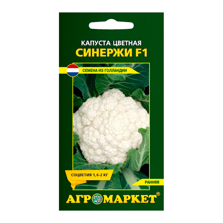 Капуста цветная Синержи F1 - ранний гибрид (от высадки рассады до технической спелости 72-75 дней) с устойчивостью к стрессовым факторам. Соцветия белоснежные, ровные, плотные, массой 1,6-2 кг. Отличная самоукрывная способность. Рекомендуется для получения конвейерной продукции с раннего лета до поздней осени. Предназначен для потребления в свежем виде и переработки. Цветная капуста очень требовательна к питанию и влаге, она не выносит кислых почв. Очень отзывчива на подкормки минеральными (азотно-калийными) и органическими удобрениями. Плохо цветная капуста растет при пониженной влажности воздуха. Ее можно возделывать среди кулис из высокорослых растений, например, кукурузы. Посев – 3-я декада апреля - 2 декада июня. Высадка рассады – 2-я декада мая-1-я декада июля. Урожай – 3-я декада июля –3-я декада сентября. Глубина посева 2-3см. Схема посадки 50 х30 см.