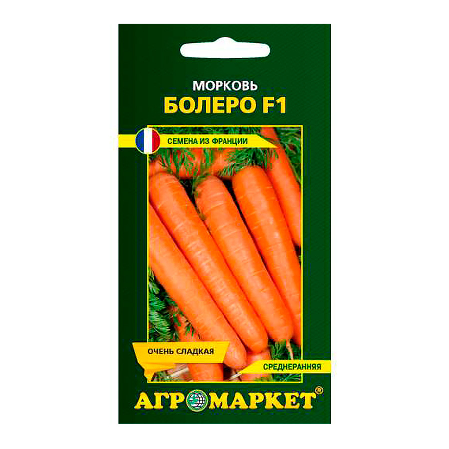 Семена моркови Болеро F1 - среднеранний гибрид Нантского типа (от всходов до сбора урожая 110-120 дней), формирующий однородные по форме, гладкие цилиндрические корнеплоды длиной 18-20 см. без зеленых плечиков, великолепного наружного и внутреннего цвета, обладающие отменным вкусом и способные переносить незначительные заморозки. Листовой аппарат прямостоящий, насыщенного зеленого цвета, хорошо прикреплен к корнеплоду. Высокий выход товарной продукции. Рекомендуется для свежего потребления, для длительного хранения, а также для переработки на сок благодаря своим высоким вкусовым качествам. Морковь - относительно холодостойкое растение. Семена ее начинают прорастать при температуре 3-4°С, а всходы выдерживают заморозки до -4°С. Семена мелкие, прорастают медленно, всходы появляются на 14-16-й день, растут и развиваются сначала очень медленно. Свежий навоз под перекопку не применяют, так как от него снижается качество корнеплодов (появляются корнеплоды уродливой формы, уменьшается содержание сухого вещества) и их лежкость. В загущенных местах проводят прореживание всходов, оставляя растение от растения на расстоянии 1 -2 см. Второе прореживание проводят, когда у моркови образуется 4-5 листьев, а диаметр корнеплодов достигнет 0,5-1,0 см. Морковь 3 раза за сезон подкармливают минеральными удобрениями серии «Лифдрип».