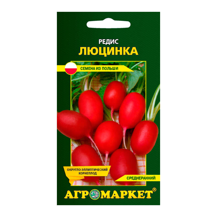 Редис Люцинка - сорт предназначен для выращивания с весны до осени в открытом грунте, а также в парниках для ранневесенних сборов. Корнеплод с оригинальной, округло-эллиптической формой, карминово-красного цвета. Мякоть белая, прозрачная, сочная. Вкус нежный. Долго пригоден к употреблению. Ценность сорта: высокая урожайность и товарность корнеплодов, великолепные вкусовые качества и устойчивость кдряблению. Сеять при прогревании почвы до +8-10°С. Культура холодостойка, выдерживает легкие заморозки. Предназначен для выращивания в открытом грунте с весны до осени, в теплицах -ранней весной и поздней осенью