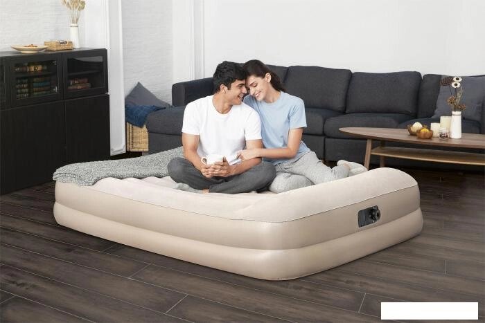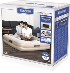 Надувная двуспальная кровать матрас с насосом Bestway Tritech Airbed 67696 со встроенным электронасосом
