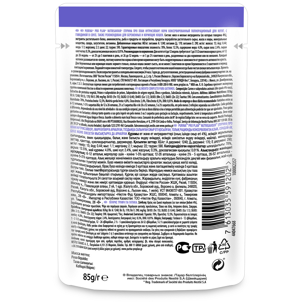 Purina Pro Plan (паучи) влажный корм Nutri Savour для котят, с говядиной в соусе – купить в интернет зоомагазине Petshop.ru: цены, отзывы, характеристики. Быстрая доставка в Санкт-Петербурге, Москве и по России.