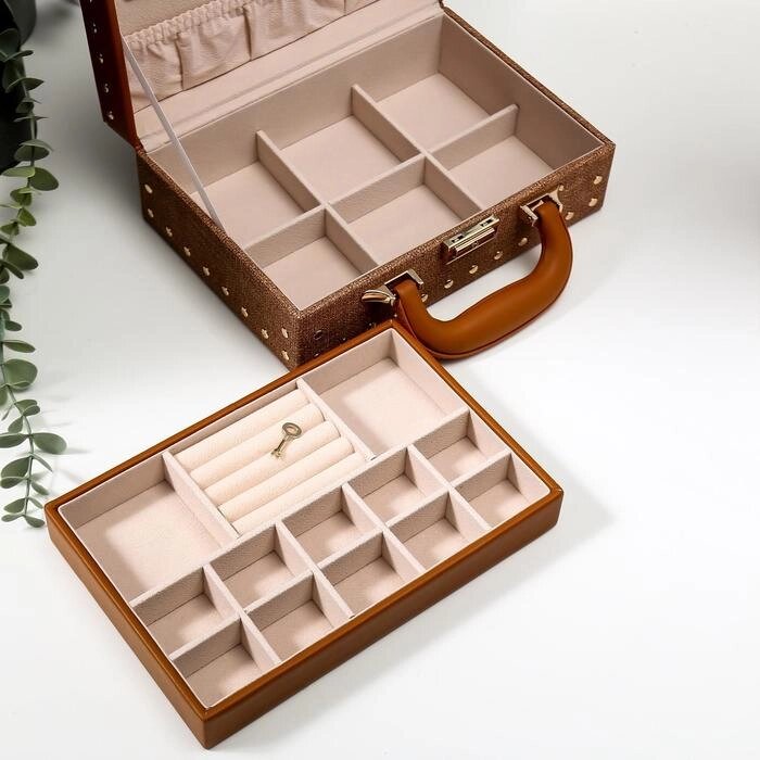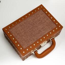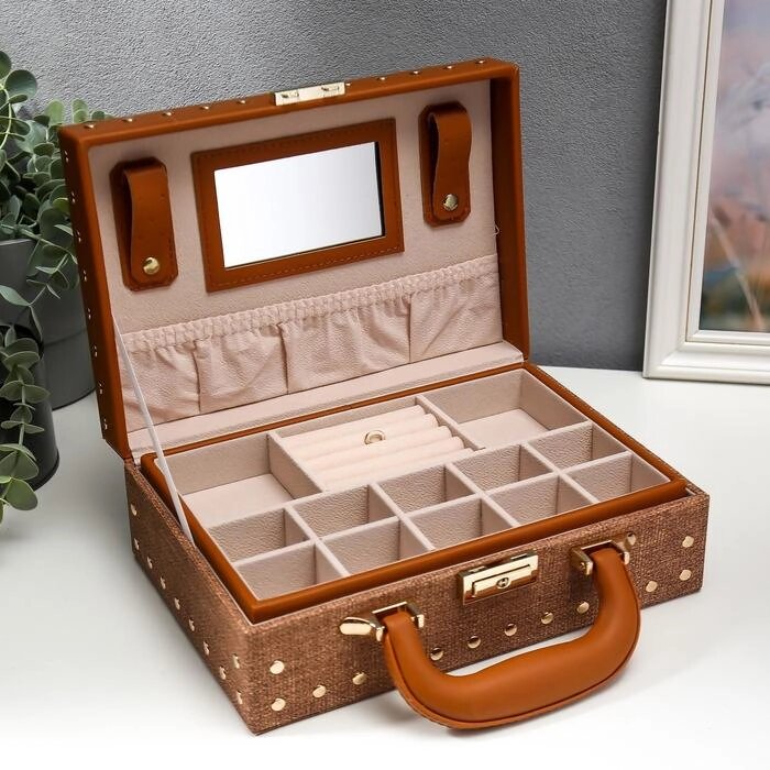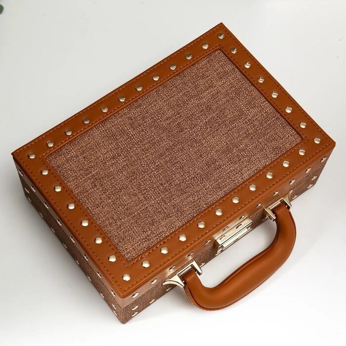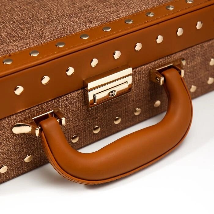 Шкатулка кожзам для украшений чемодан "С заклёпками" карамель 9,5х25х17,5 см