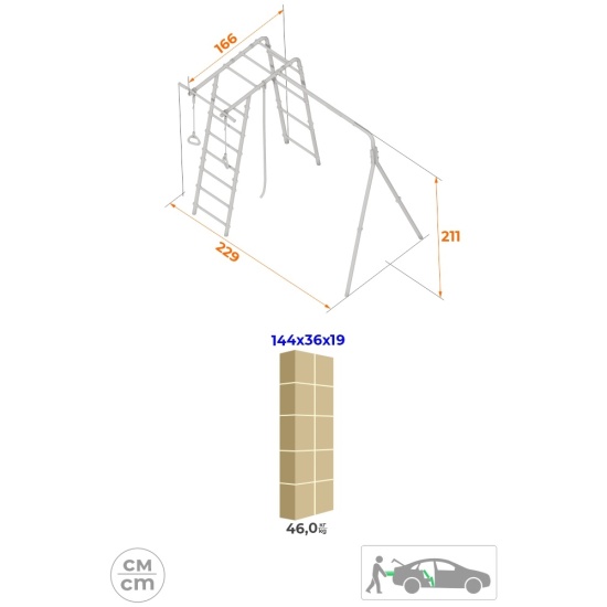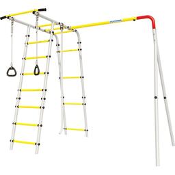 Толщина металла стоек: 1,5 ммСтрана происхождения: РоссияСпособ установки: цементируются «стаканы»Материал: металлВысота: 2,11 мЗанимаемая площадь: 2,29 х 1,66 мДиаметр трубы: 42 ммДиаметр ступени: 26 ммШирина ступени: 0,49 мШаг ступени: 0,26 мДопустимая нагрузка на навесное оборудование: 50 кгКомплектация: рукоход, турник, канат, кольца гимнастическиеДопустимая нагрузка: 100 кгВозрастная категория: 3+Вес комплекса: 46 кгУпаковка: картонная коробкаДопустимая нагрузка на турник: 100 кг