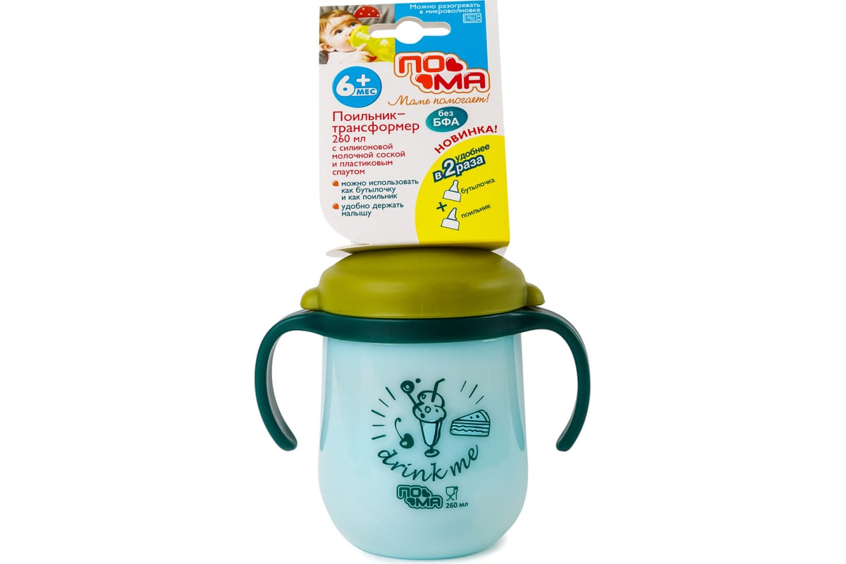Поильник-трансформер с силиконовой молочной соской и пластиковым спаутом ПОМА 260 мл 2614