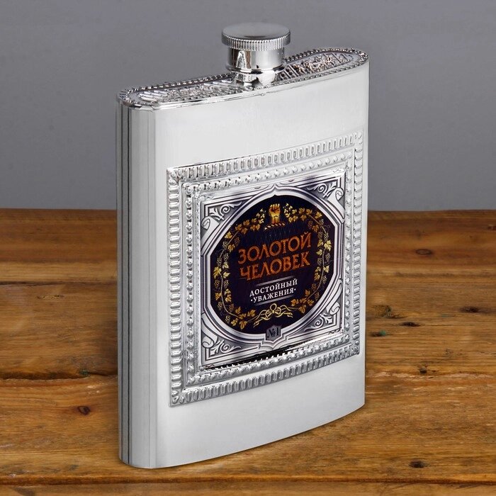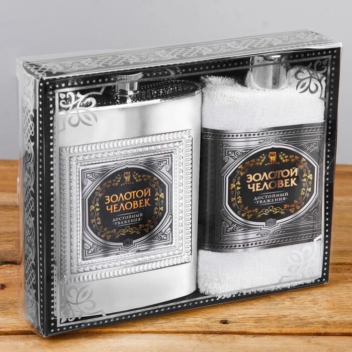 Набор подарочный "Золотой человек", фляга 240 мл, полотенце (30 х 30 см)