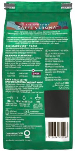 Кофе молотый Starbucks Сaffe Verona / 0002093070 (200г )