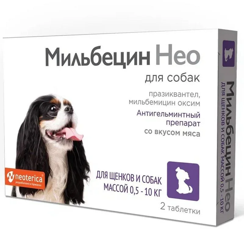 Таблетки Мильбецин Нео от гельминтов для щенков и собак 0,5-10 кг
