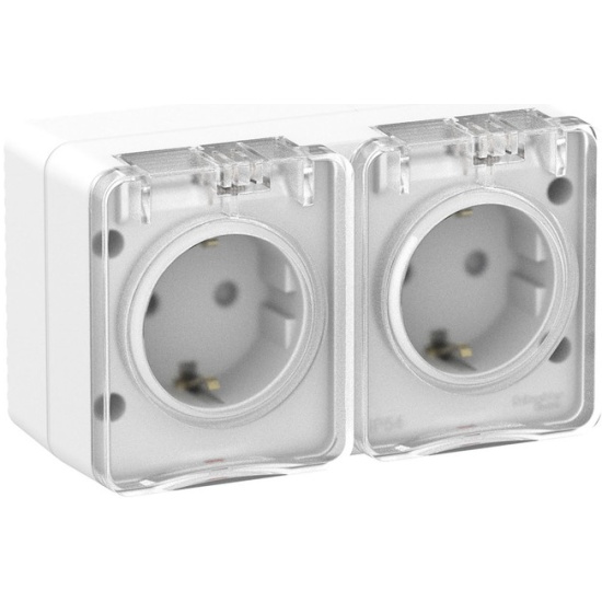 Розетка SCHNEIDER ELECTRIC AtlasDesign PROFI IP54 O/У двойная, с заземлением, со шторками 16А, 250B, Белый ATN540126
