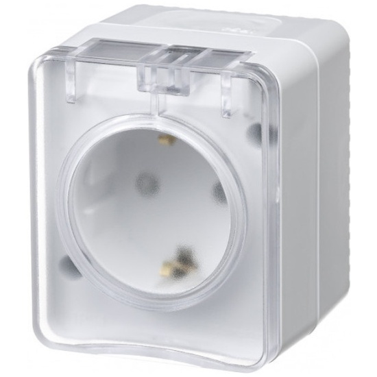 Розетка SCHNEIDER ELECTRIC AtlasDesign PROFI IP54 O/У с заземлением, со шторками, 16А, 250B, Белый ATN540145