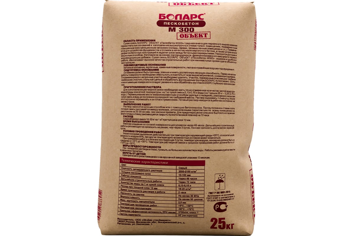 Смесь БОЛАРС ПЕСКОБЕТОН М-300 25 кг 00000029114