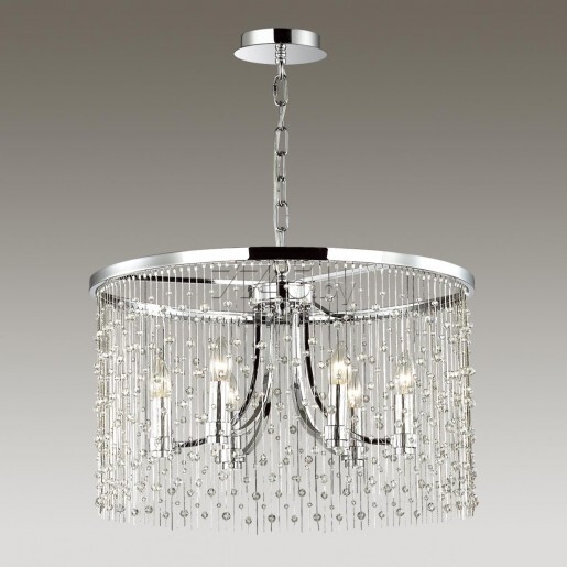 Люстра подвесная ODEON LIGHT 4845/6 Hall ODL21 409 хром - центром притяжения в дизайне является абажур из металлических цепочек, словно сказочный шатер. На изысканные цепочки из высокачественного нержавеющего металла с тонким филигранным плетением нанизаны прозрачные хрустальные бусины разного размера. Данная линия светильников представлена в двух цветах - золото и хром.