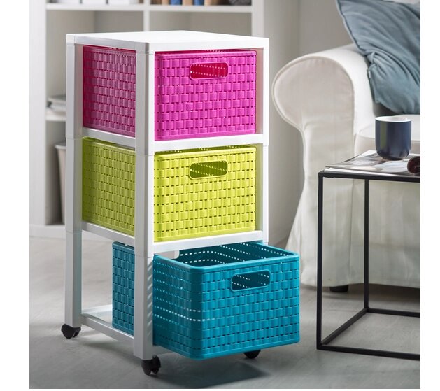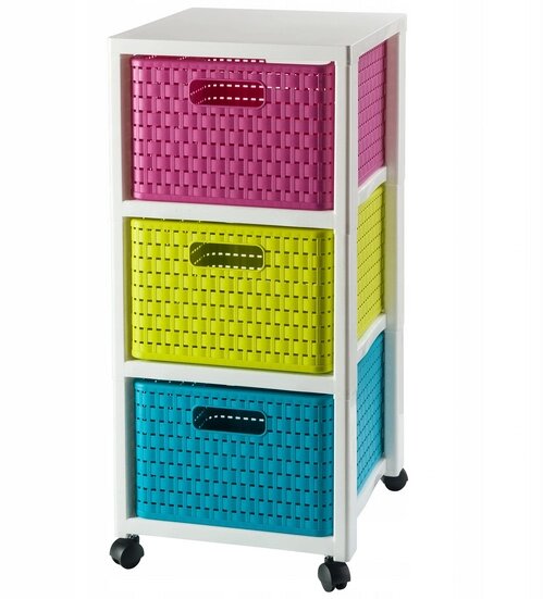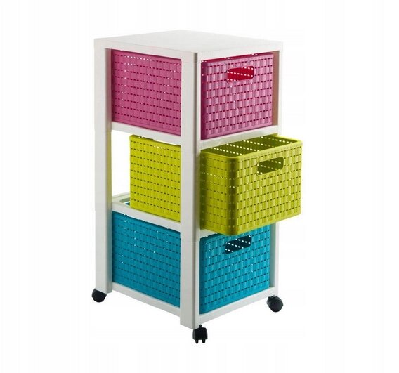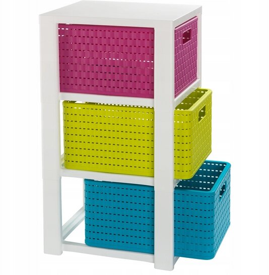 Комод пластиковый 3 отд. 50 l COUNTRY, белый/розовый, лайм, бирюзовый