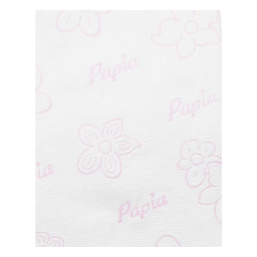 Трехслойная ароматизированная туалетная бумага Papia Secret Garden белого цвета с тиснением и перфорацией, оформлены тисненым рисунком в виде цветов и надписи «Papia».