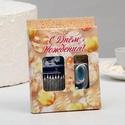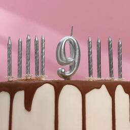 Набор свечей для торта (2 в 1) серебряная Цифра "9"Свечи "С Днём Рождения" серебро 10шт