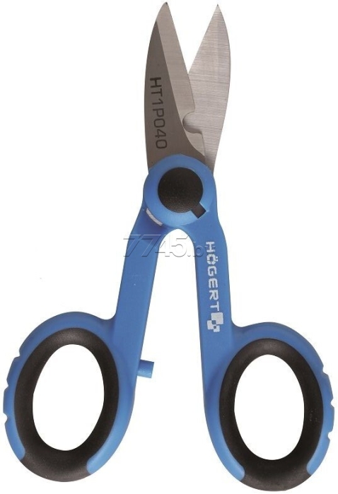 Ножницы электрика 140 мм HOEGERT (HT1P040) предназначены для резки кабелей, проводов, изоляции, листового металла, пластмассы, кожи и т.д. Рассчитаны на профессиональное применение. Лезвия ножниц изготовлены из высококачественной нержавеющей стали твердостью 48 - 52 HRC. Усиленные зубчатые режущие кромки обеспечивают ровный рез. Специальный паз облегчает резку кабелей. Двухкомпонентные эргономичные рукоятки со специальной профилированной противоскользящей поверхностью.