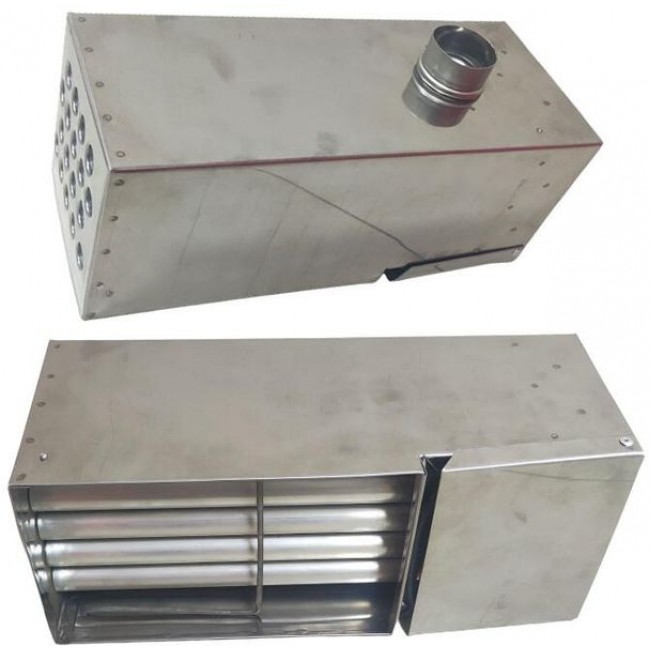 - Корпус Теплообменника изготовлен из нержавеющей стали толщиной 0.5мм, а нагреваемые трубки из алюминия имеющего отличную теплопроводность.