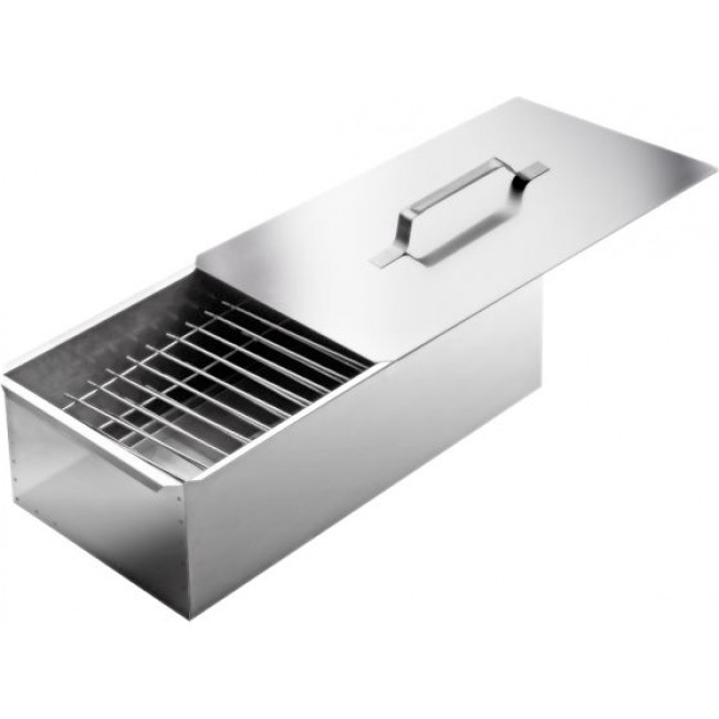 В комплекте: корпус, решетки (2 яруса), поддон для сбора жира с ручкой, крышка задвижная с ручкой.