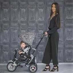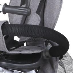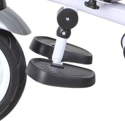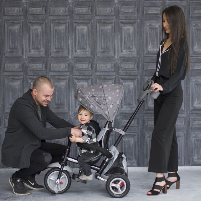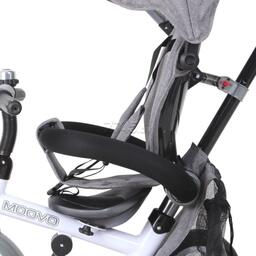 Велосипед детский LORELLI Moovo Air предназначен для детей от 12 до 36 месяцев и весом не более 20 кг. Трехколесный велосипед имеет надежную и удобную стальную конструкцию. Во время катания на велосипеде у ребенка есть возможность крутить педали самостоятельно или удобно расположить свои ножки на специальных подножках и отдохнуть. Для комфорта предусмотрена регулировка наклона спинки, подножки, а также солнцезащитный капюшон. Велосипед оборудован родительской ручкой с усиленной конструкцией, с ее помощью родители смогут управлять велосипедом. На ручке размещена сумка-карман для хранения мелочей. Сиденье выполнено из качественных материалов с комфортным съемным чехлом из дышащей ткани. Ручку, спинку, капюшон, страховочный ободок можно снять, и ребенок сможет самостоятельно ехать. Для безопасности предусмотрены ремни безопасности и мягкий разъемный передний бампер. В тканевую корзину можно складывать игрушки и необходимые вещи, а в пластиковый держатель можно ставить бутылочку с напитком.
