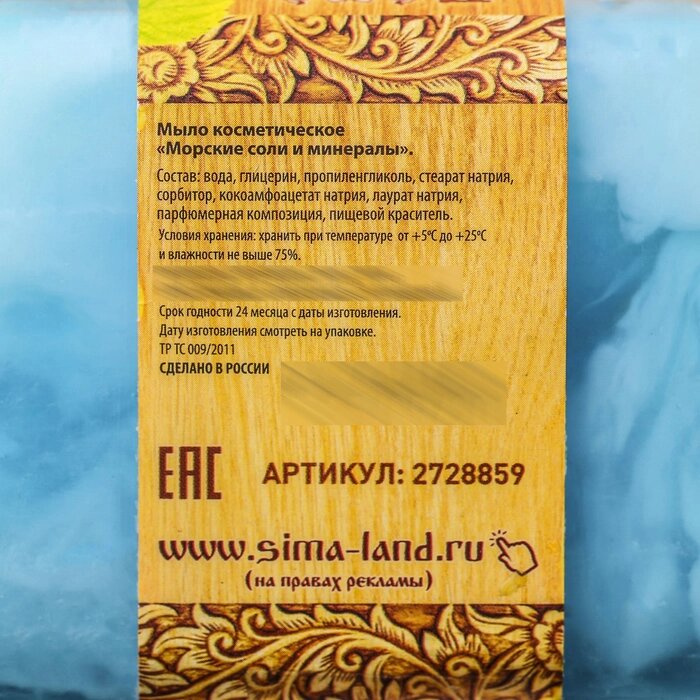 Косметическое мыло в баню "Морские соли и минералы", ручная работа