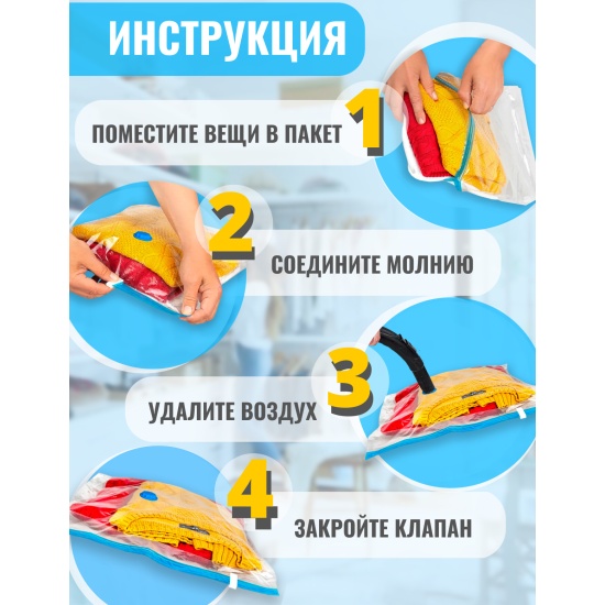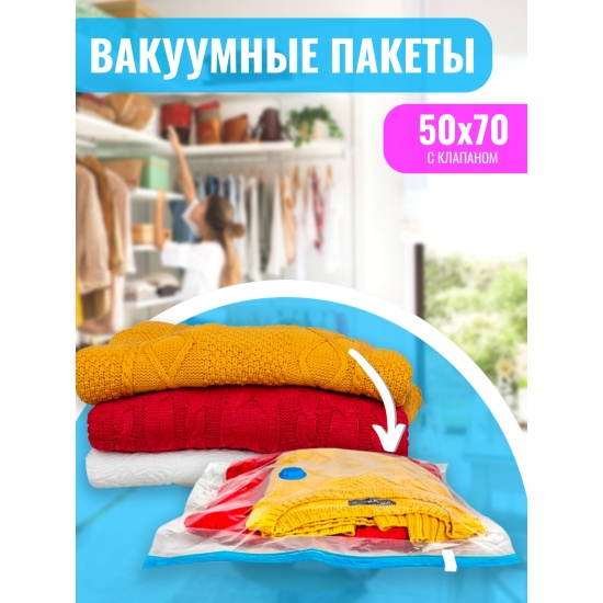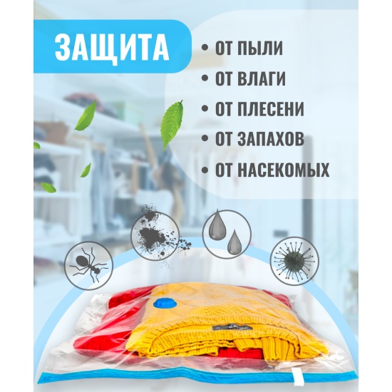 Вакуумный пакет для хранения вещей и одежды PROtect 10214, 50x70 см /многоразовый /с zip молнией/с клапаном 10214 PROtect