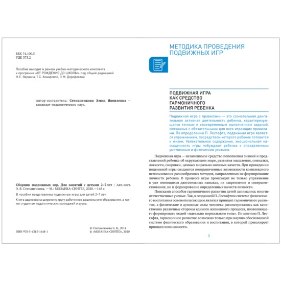 Книга Сборник подвижных игр для занятий с детьми 2-7 лет. ФГОС (Степаненкова Э. Я.) 9785431516481